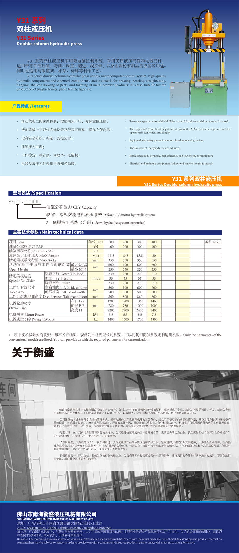 衡盛液压Y31 系列双柱液压机