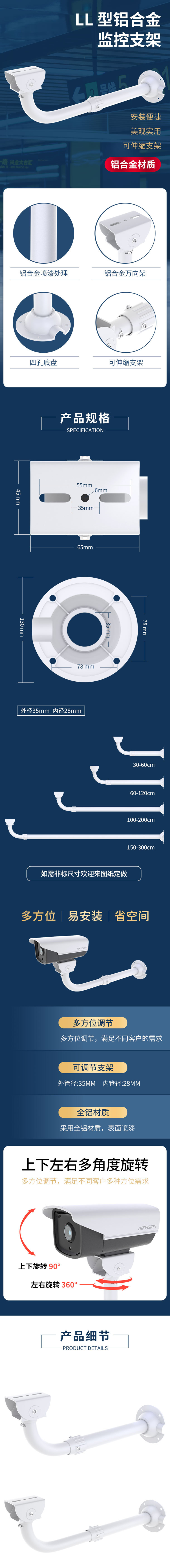 L信壁装35管铝合金鸭嘴伸缩摄像机支架0.3-3米监控支架安防器材